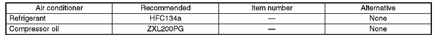 Standard air conditioners on Subaru vehicles use HFC134a refrigerant. Do not mix it with other refrigerants. Also, do not use any air compressor oil except for ZXL200PG.