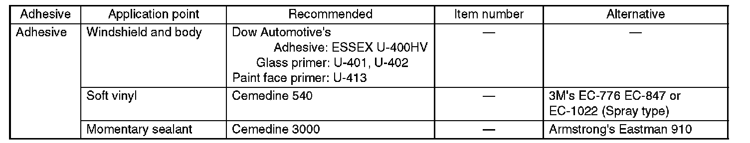 Use the adhesives shown in the table, or equivalent.
