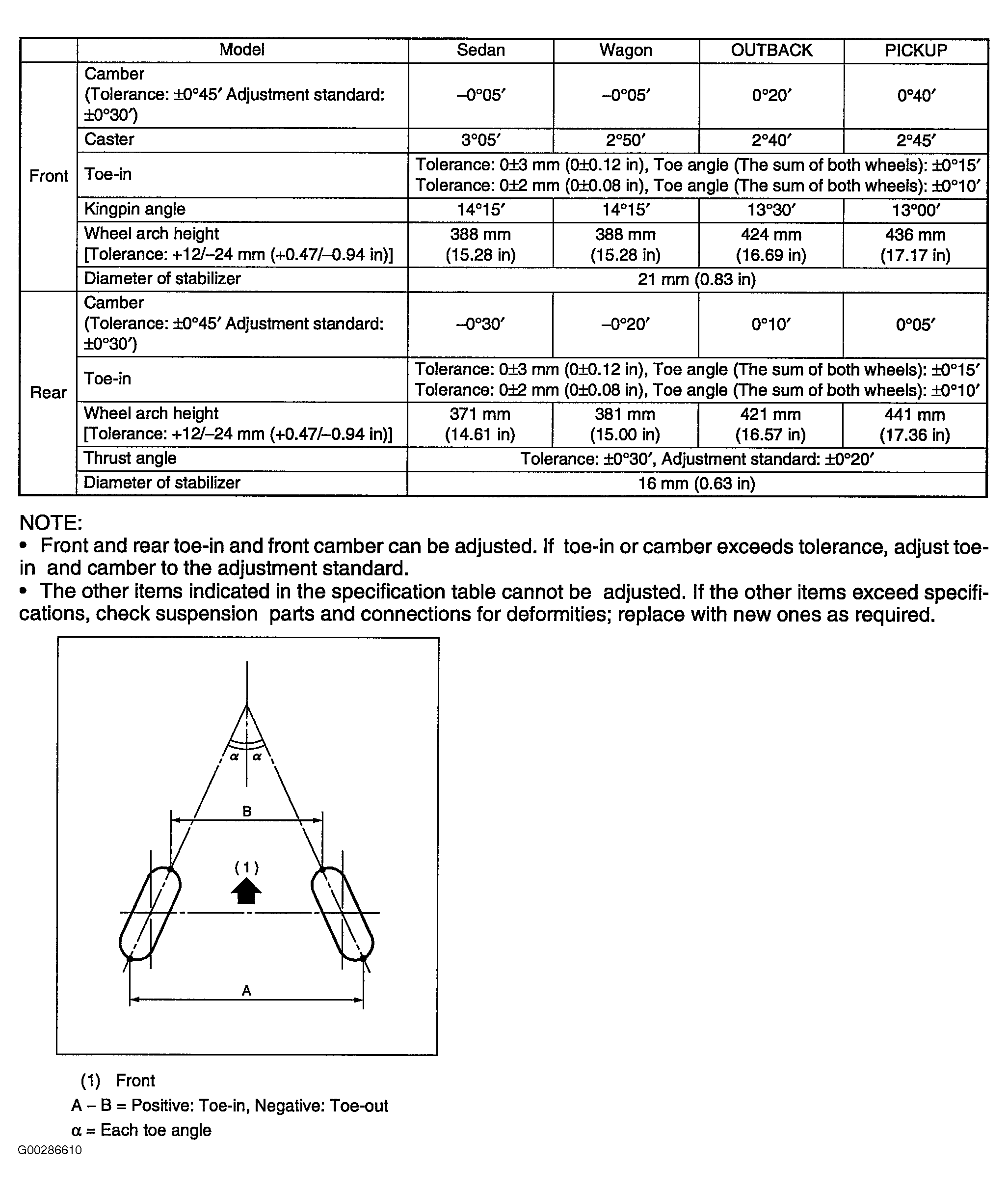 Fig 1: Wheel Alignment Specifications (Legacy & Outback)