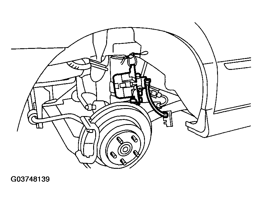 - Remove rear brake caliper, then tie it up to the body side of the vehicle as shown in Fig 15.