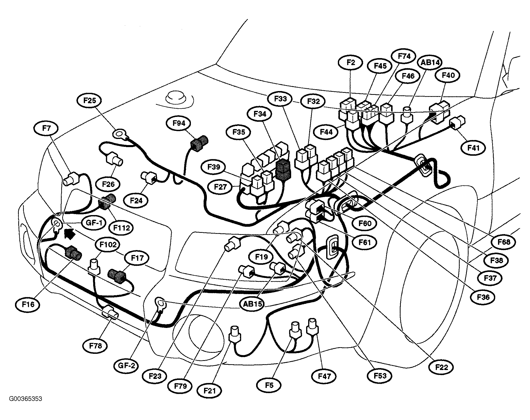 | SBF Holder (F34) | On left side of engine compartment. See Figure. |