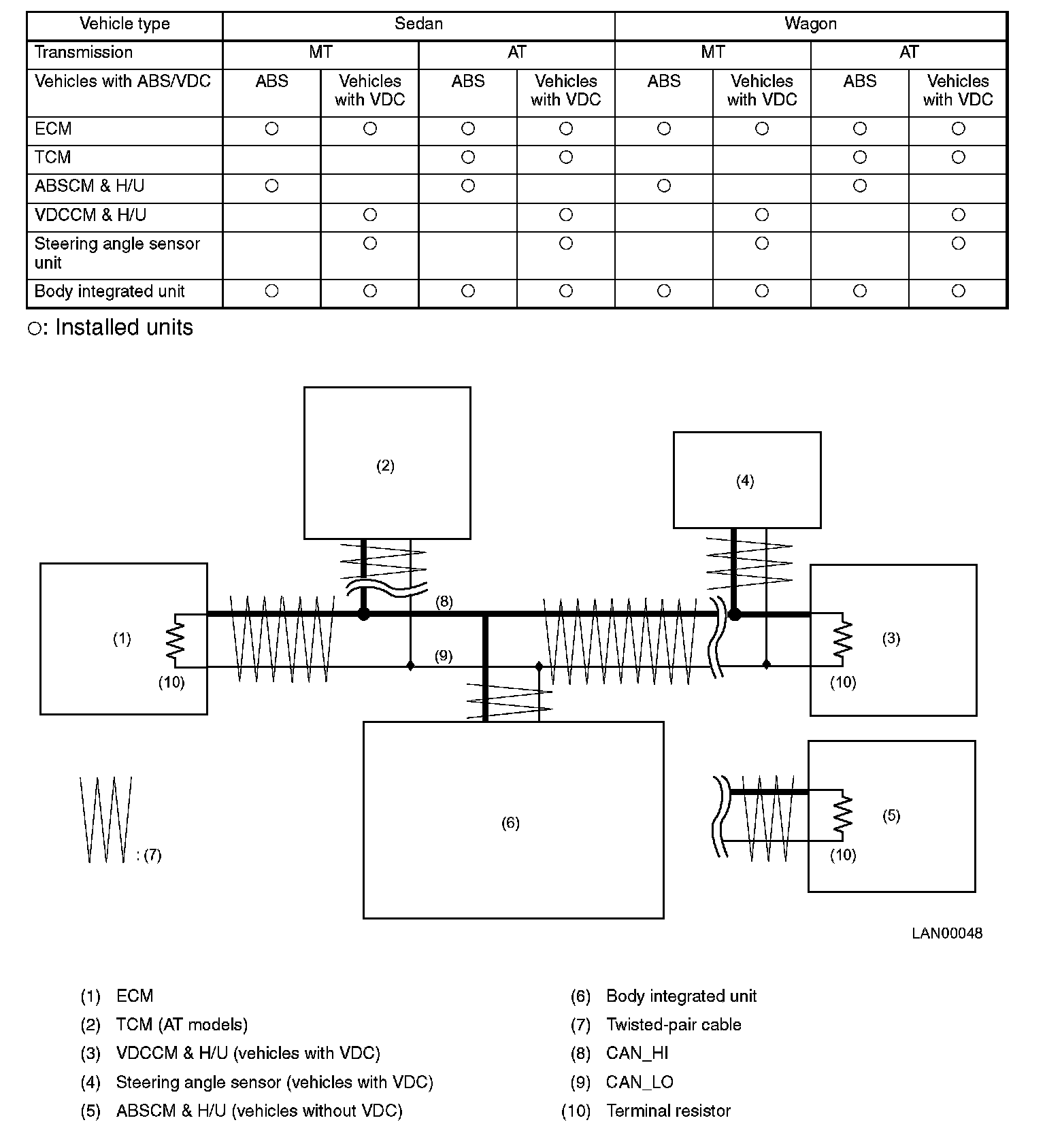 - Terminal resistors built into the ECM and VDCCM & H/U stabilize traffic on the bus, and enables signals distinction from the voltage difference between the two bus lines (CAN_High and CAN_Low). These bus lines are called the main lines. Other units are connected in parallel to the main lines. These wires are called branch lines.