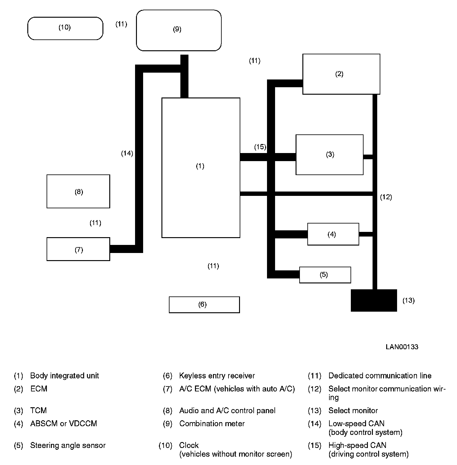 - The high- and low-speed LANs described, and the IE_Bus, dedicated communication lines, and select monitor communication, etc. comprise the vehicle's data communication system.