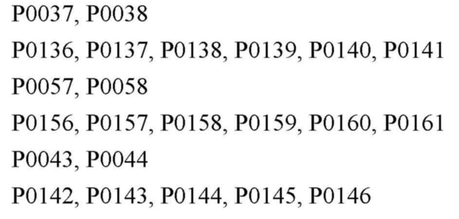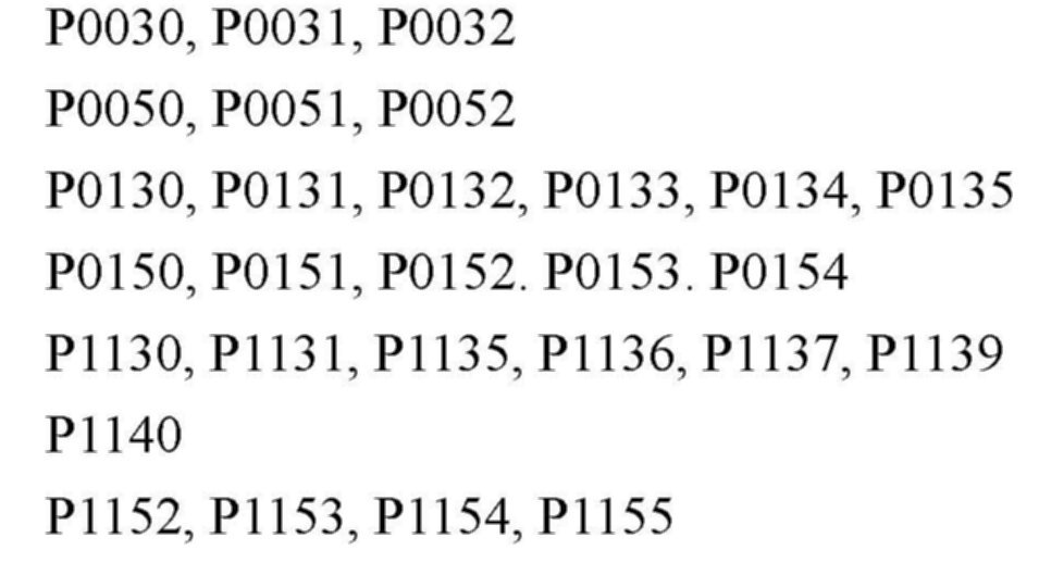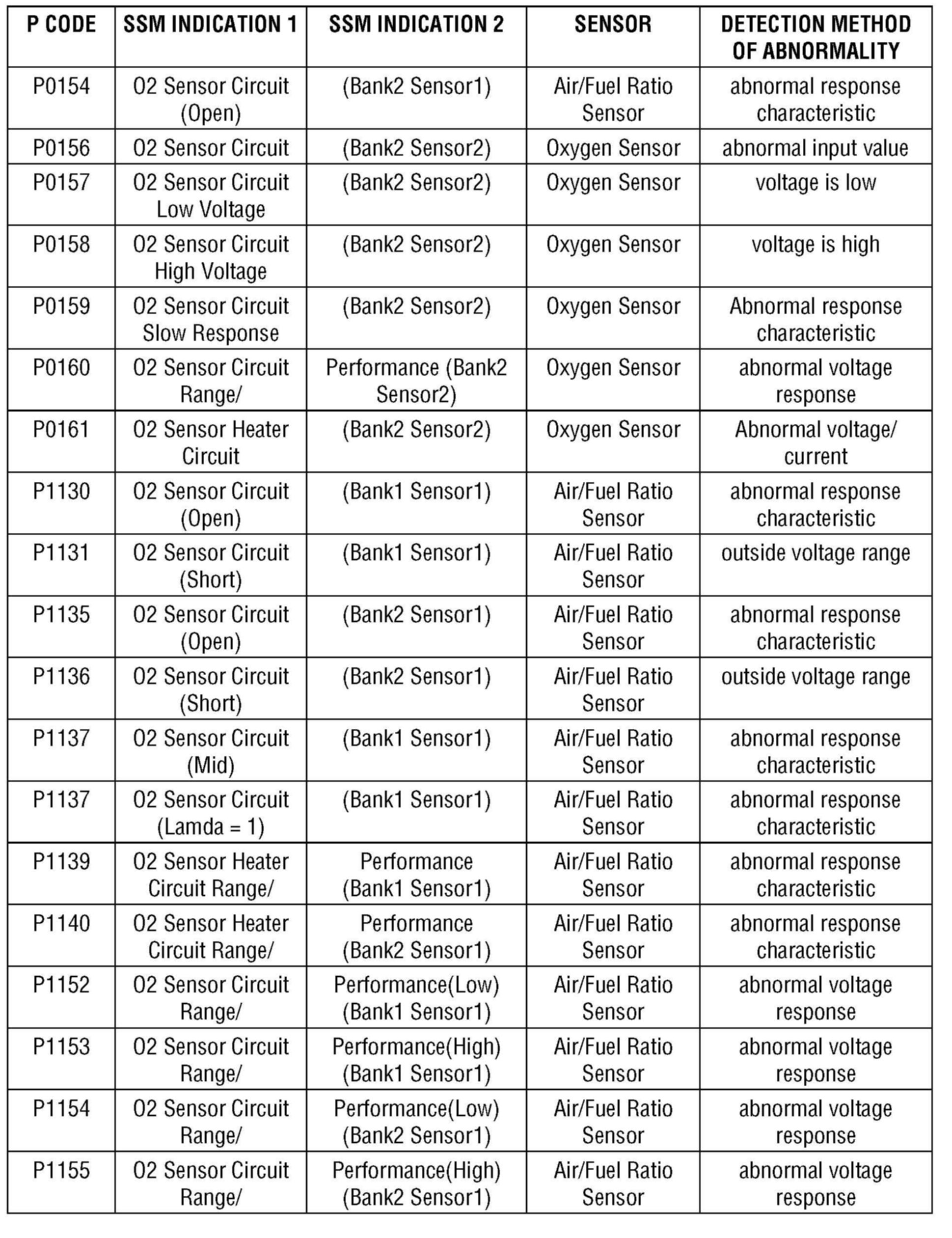 The list above is of O2 Sensor related DTCs. (This list is for example only. Refer to the applicable service manual for a complete list of DTCs.)