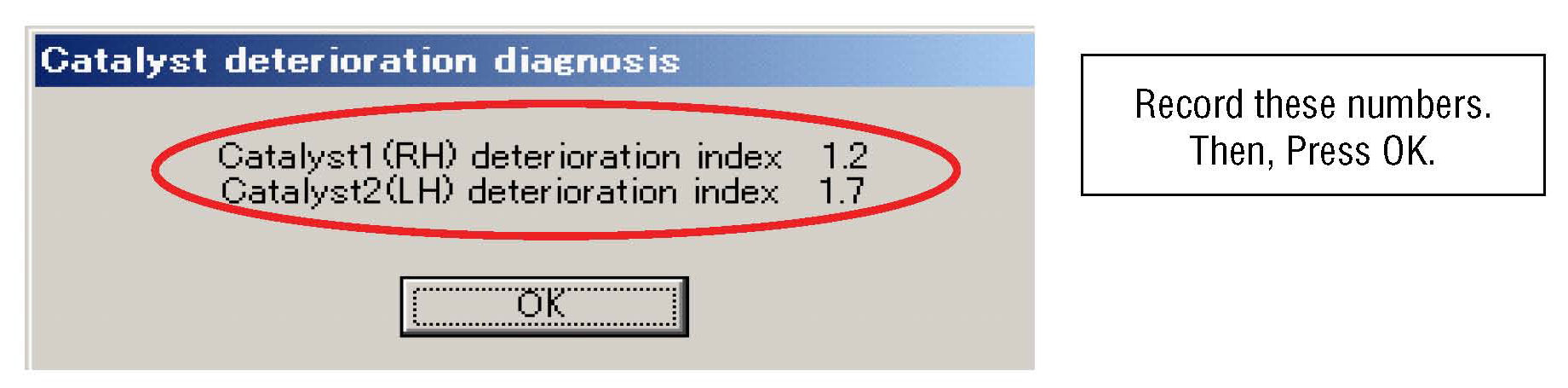 Once the deterioration index for catalyst 1 (RH) and catalyst 2 (LH) have been determined, proceed as follows: