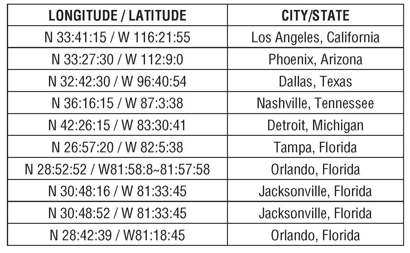 If you encounter a customer complaint that the Navigation screen freezes in specific locations (refer to Occurrence Location Chart) there is a Navigation Update Program disc now available to address the concern The screen will only freeze if the vehicle is in the exact location as listed. Once the vehicle is moved from that location, the screen will display normally. Any frozen screen concern that occurs in other than the listed locations must be diagnosed using applicable service information as the procedures listed in this bulletin would not apply.