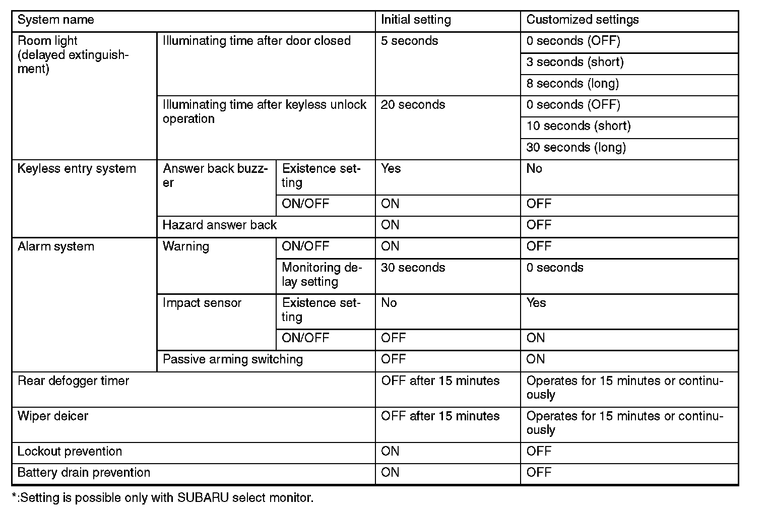 Items above must be set to coincide with the vehicle's equipment and specifications for normal operation and diagnosis.