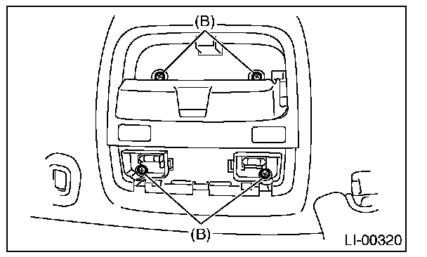 2. Remove the lens (A) and spot map light mounting screws (B).