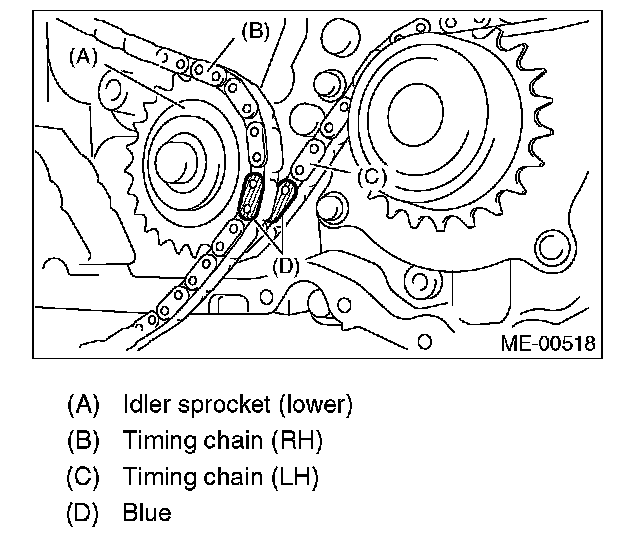 Align the marks of timing chain LH and RH on the idler sprocket (lower).