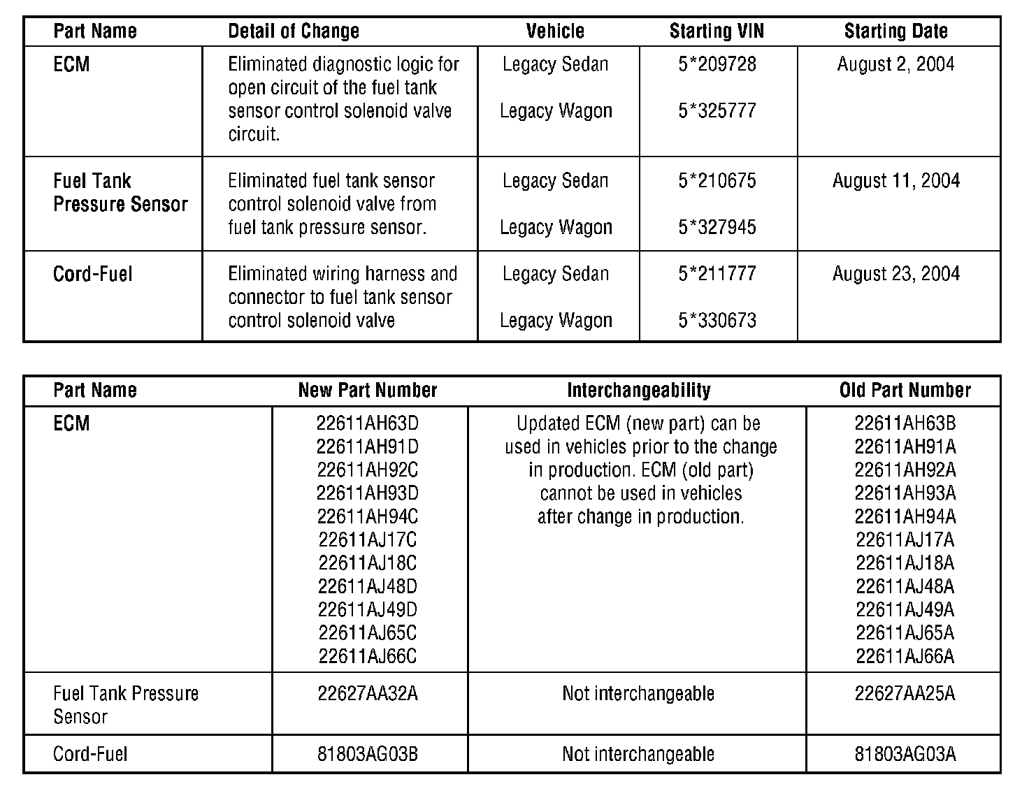 Home >> Subaru >> 2005 >> Outback F6-3.0L >> Repair and Diagnosis >> Powertrain Management >> Computers and Control Systems >> Engine Control Module >> Technical Service Bulletins >> All Technical Service Bulletins >> Engine Controls/Fuel System - Production Updates