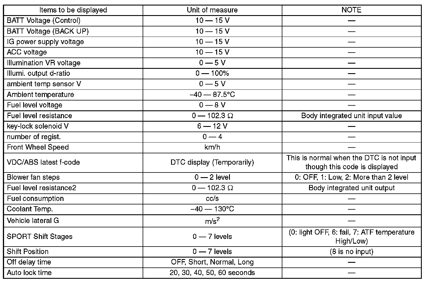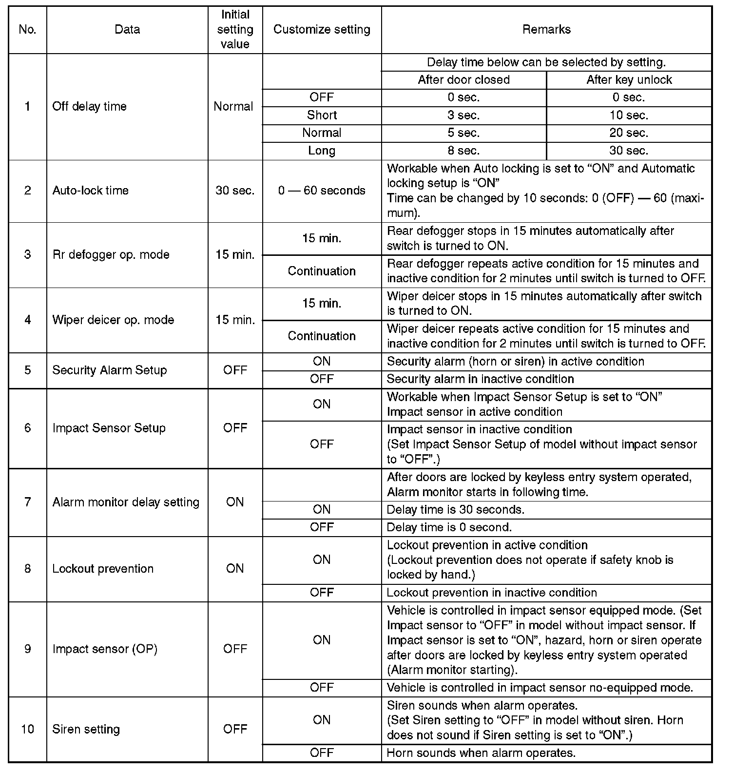 - Be sure not to change Factory initial setting except installation of new body integrated unit.
