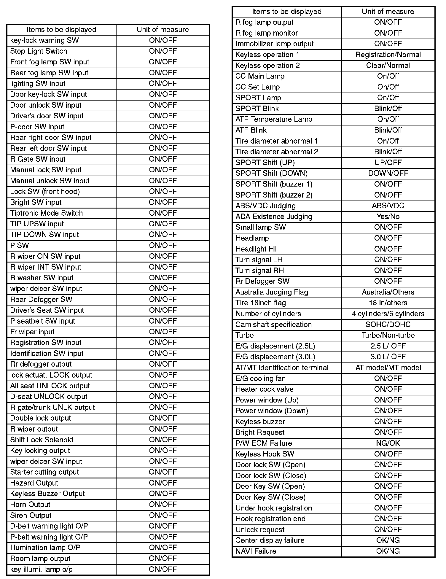 5. After setting, make sure that vehicle equipment is same as the setting changed in the {Current Data Display & Save}.