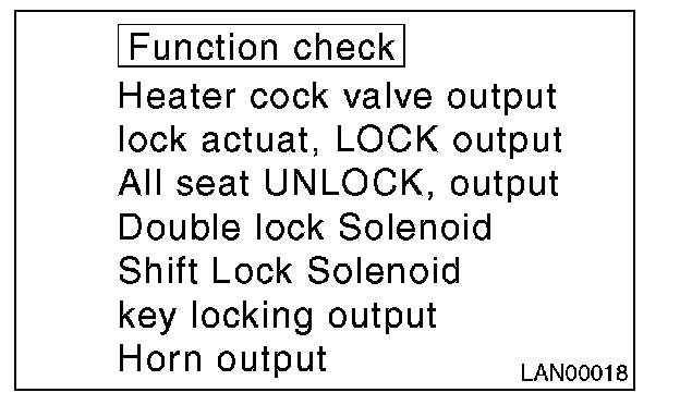 In order to check the body integrated unit function, inspect the body integrated unit and actuator using Subaru Select Monitor without operating switches.