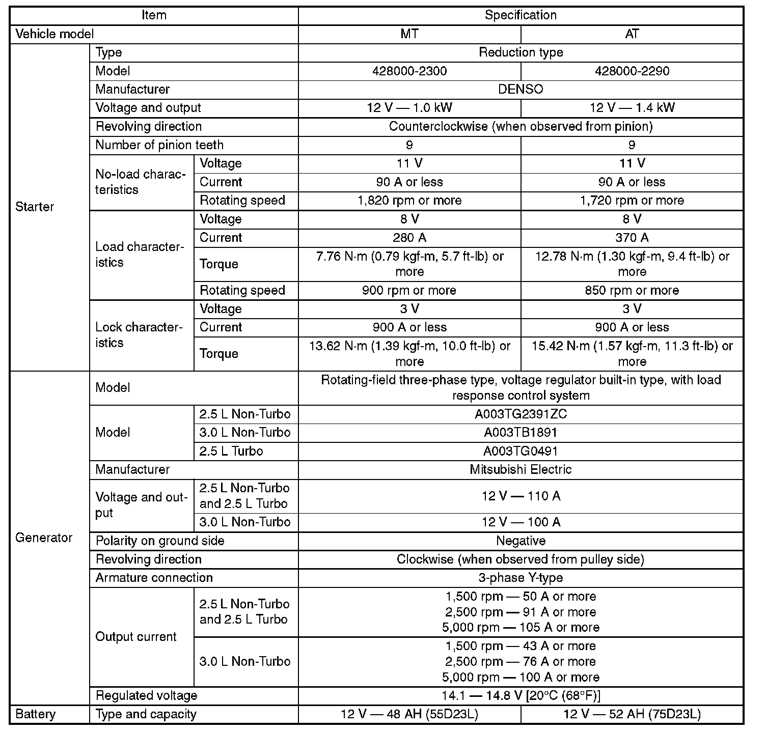 Electrical Specifications