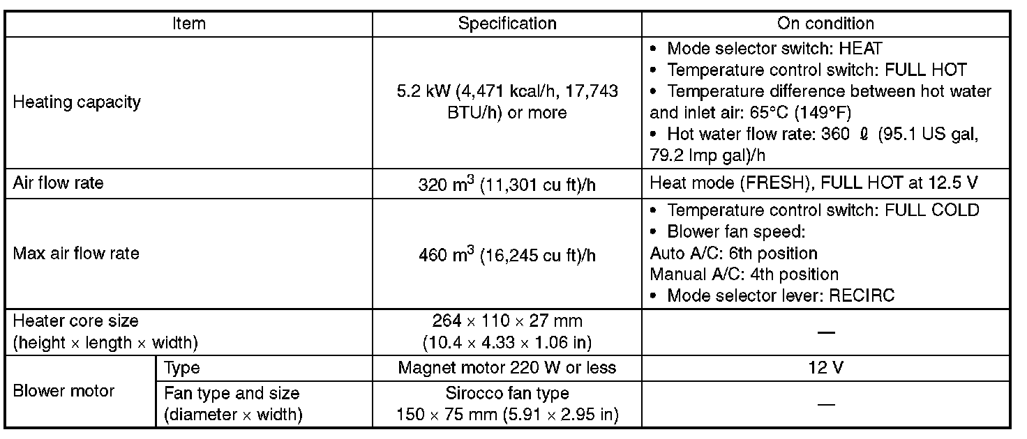 Specification - Heater System: