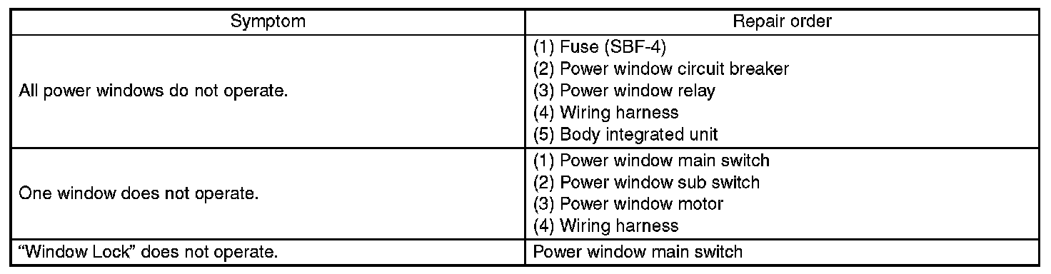 Power Window System - Inspection: