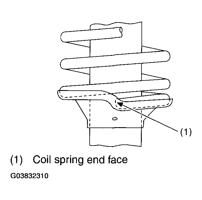 NOTE: After completely purging air from the strut, be sure to place the strut with the piston rod facing up. If the strut is laid down and set, check for the entry of air in accordance with "Check for presence of air". - Using a coil spring compressor, compress the coil spring.NOTE: Make sure that the vertical installing direction of coil spring is as shown in Fig 1 .