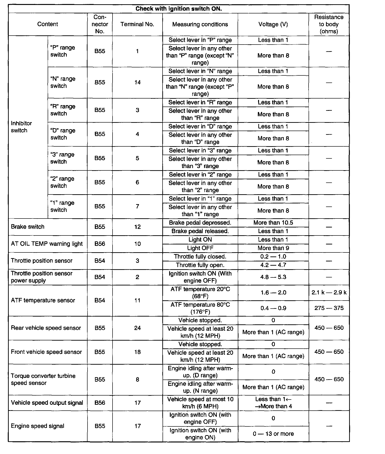 Transmission Control Module (TCM) 1/0 Signal
