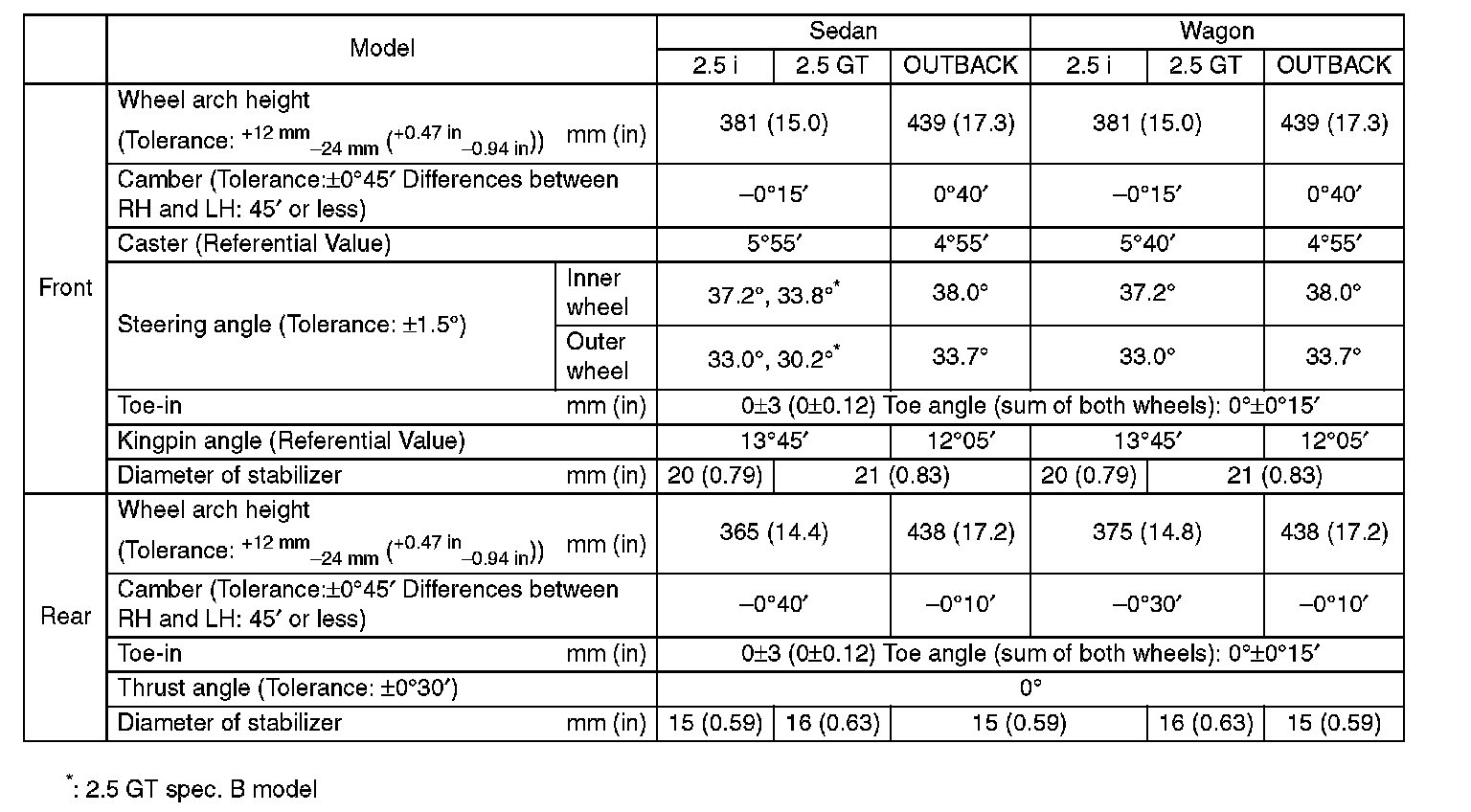 Home >> Subaru >> 2006 >> Outback F4-2.5L SOHC >> Repair and Diagnosis >> Specifications >> Mechanical Specifications >> Alignment