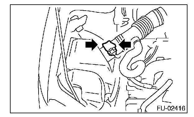 2. Disconnect the connector from mass air flow and intake air temperature sensor.