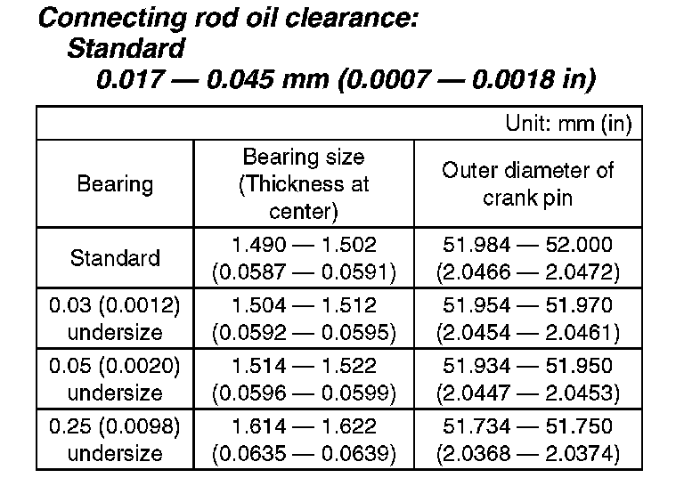 Oil clearance, standard 0.017 - 0.045 mm (0.0007 - 0.0018 inch)