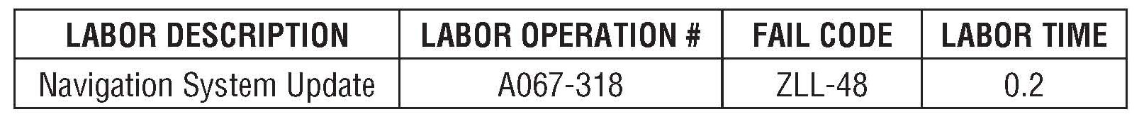 If you encounter a customer complaint that the Navigation screen freezes in specific locations (refer to Occurrence Location Chart) there is a Navigation Update Program disc now available to address the concern The screen will only freeze if the vehicle is in the exact location as listed. Once the vehicle is moved from that location, the screen will display normally. Any frozen screen concern that occurs in other than the listed locations must be diagnosed using applicable service information as the procedures listed in this bulletin would not apply.