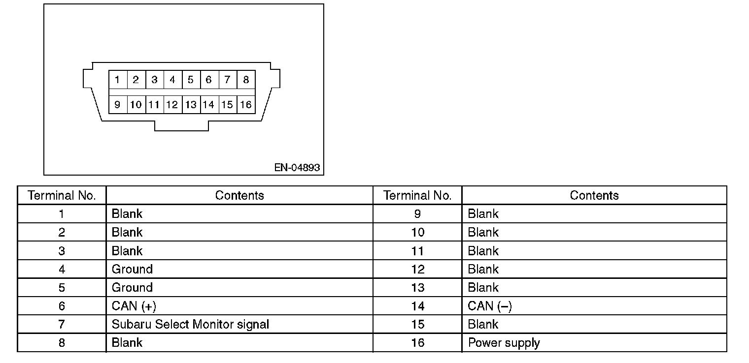 Data Link ConnectorNOTE: This connector is used for Subaru Select Monitor.