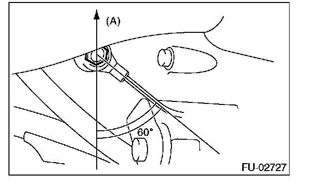 NOTE: Extraction area of knock sensor cord must be positioned at a 60° angle relative the engine rear.