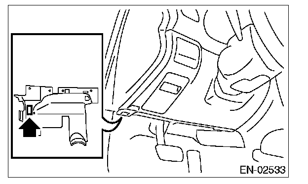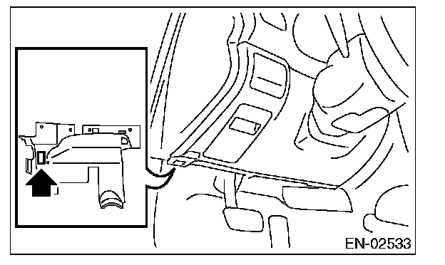 6. Connect the Subaru Select Monitor to data link connector located in the lower portion of the instrument panel (on the driver's side).