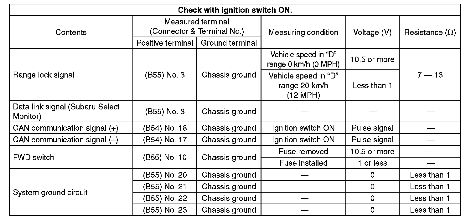 Transmission Control Module (TCM) I/O SignalELECTRICAL SPECIFICATIONELECTRICAL SPECIFICATION (Part 1):