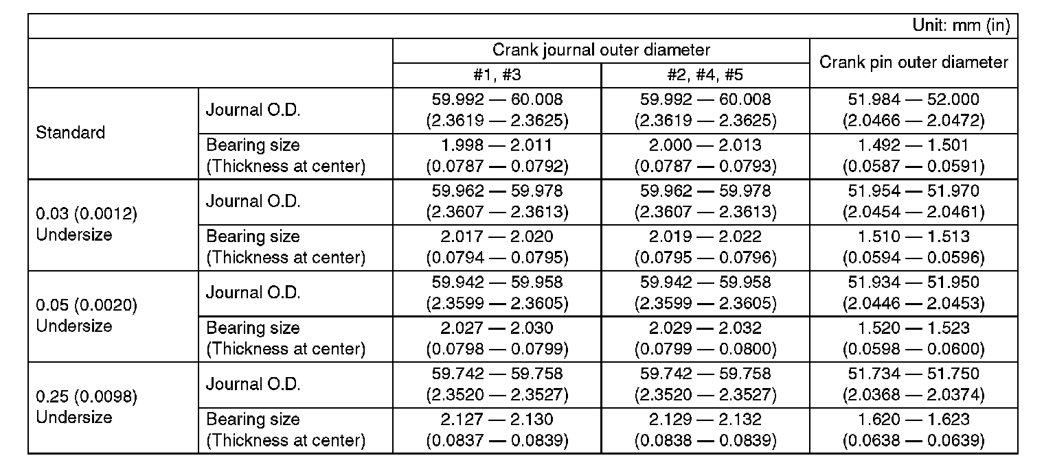 Cylinder blockSurface warpage limit (mating with cylinder head) 0.025 mm (0.00098 inch)