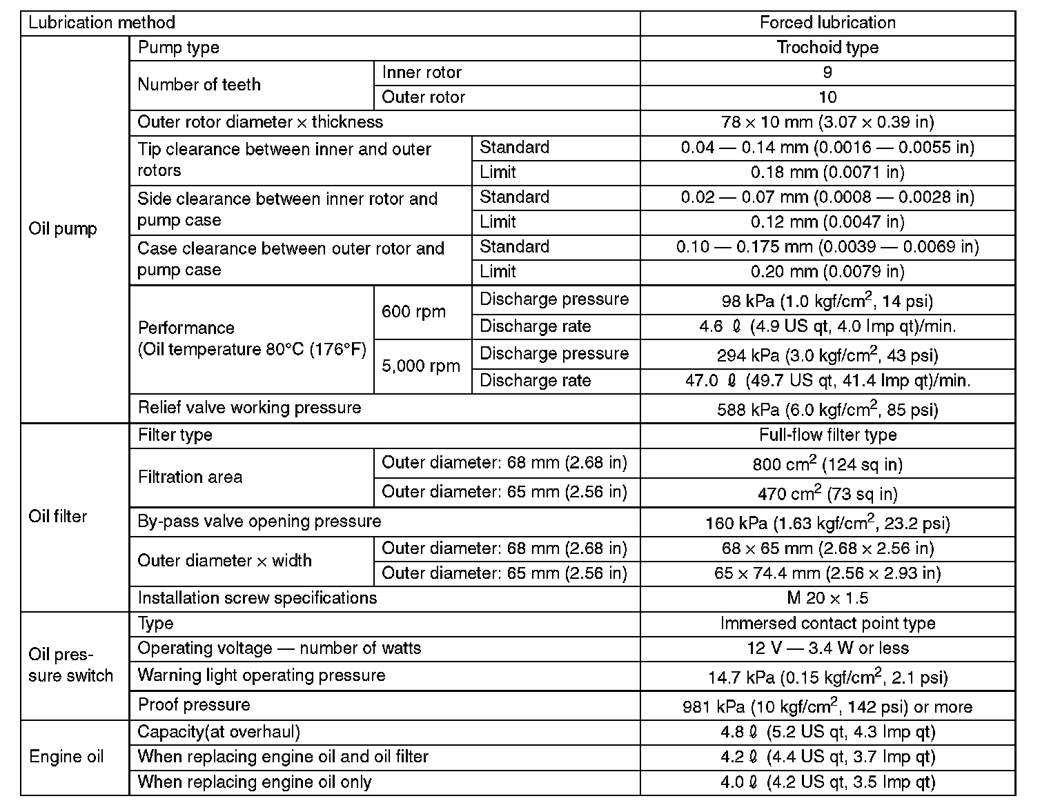 SPECIFICATIONCAUTION: It is acceptable to fill an engine with oil of another brand when replacing the oil, but make sure to use an oil with an API standard and SAE viscosity number specified by Subaru.