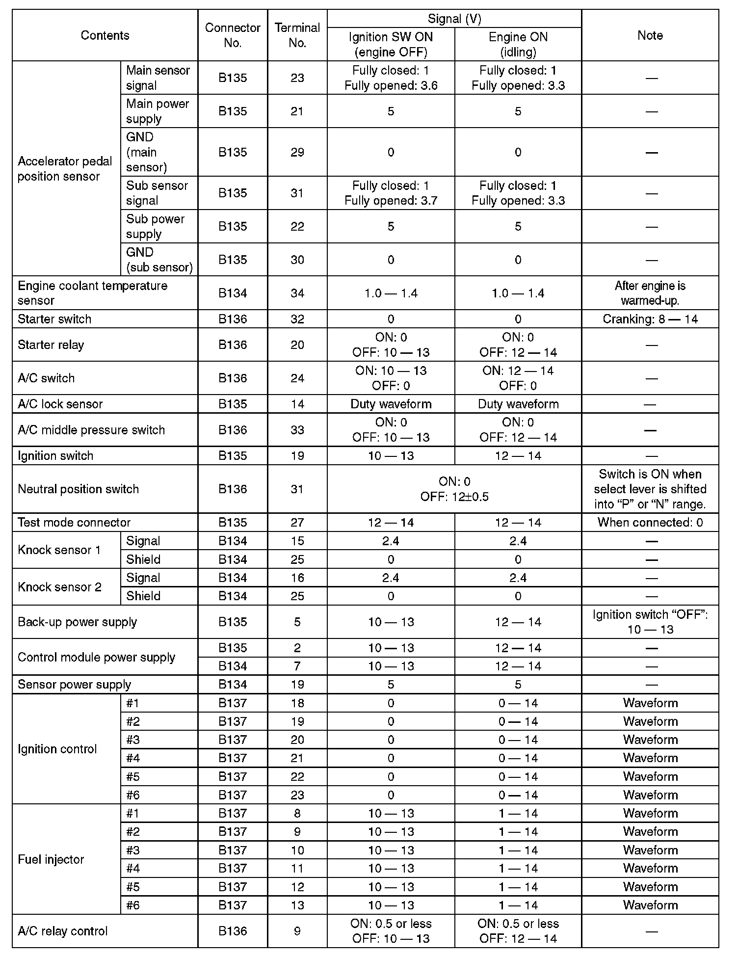 Engine Control Module (ECM) I/O Signal (Part 5):
