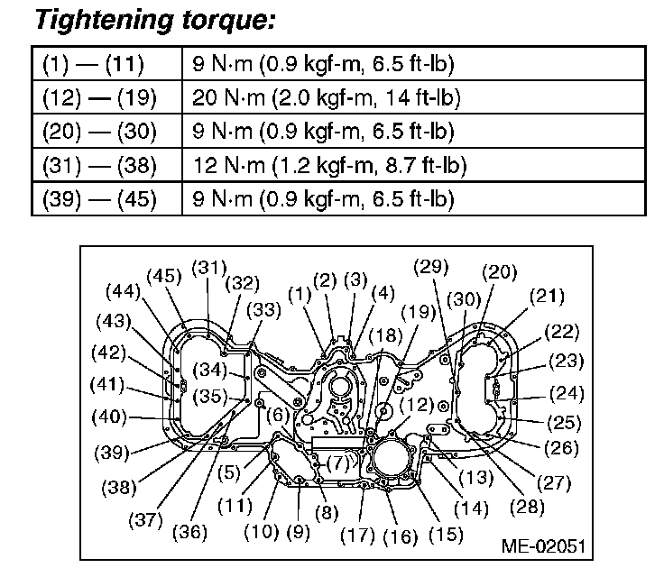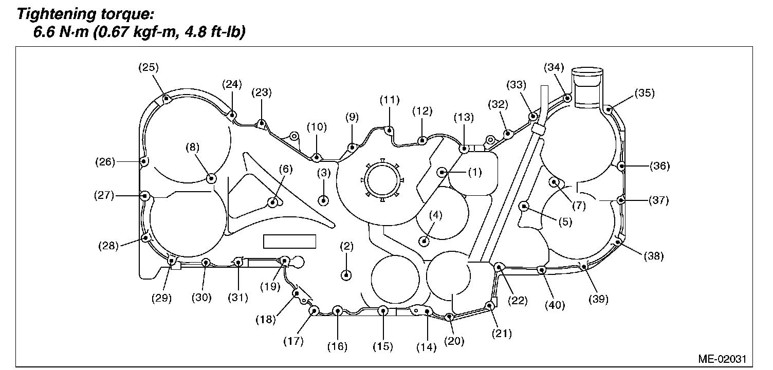 Front Chain Cover Bolts 6.6 N-m (0.67 kgf-m, 4.8 ft. lbs.)Tightening torque: