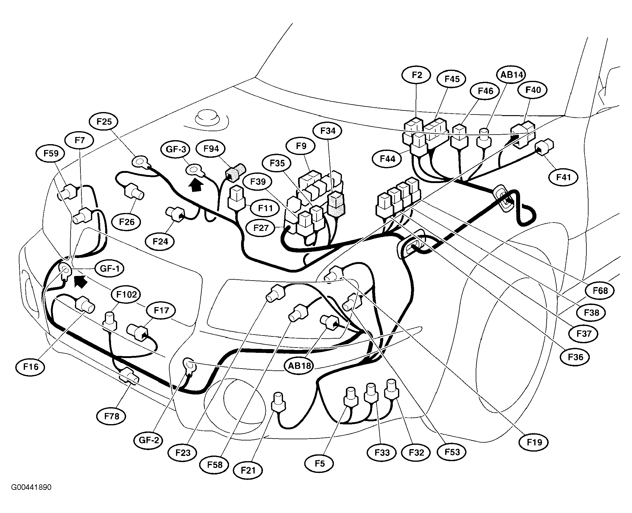 | SBF Holder (F34) | On left side of engine compartment. See Figure. |