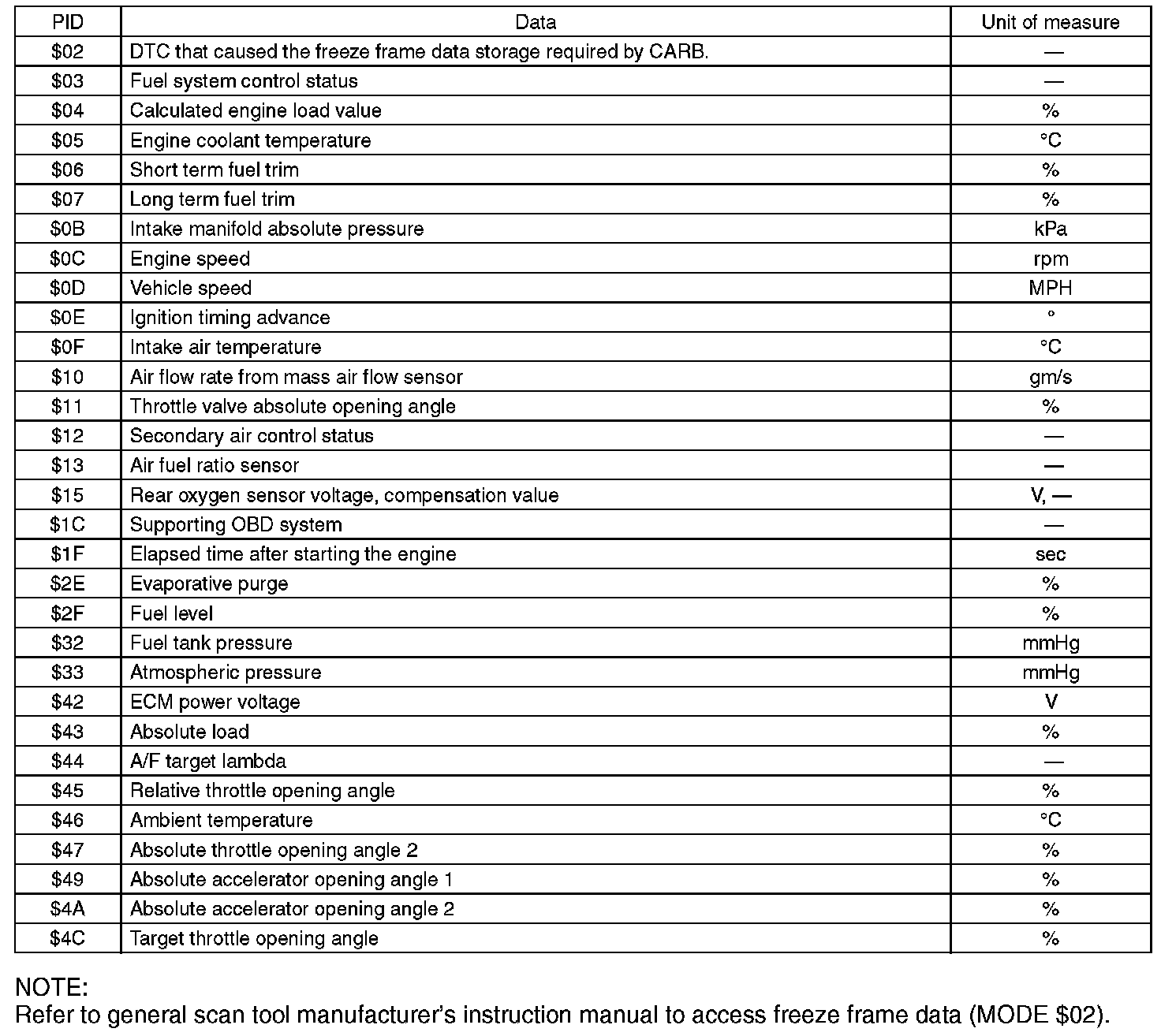 2. MODE $02: Powertrain freeze frame data