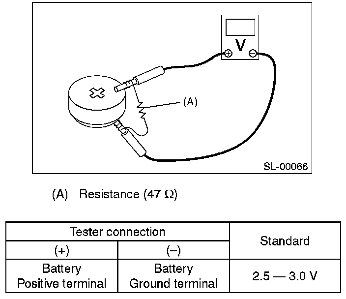 Home >> Subaru >> 2008 >> Outback F4-2.5L SOHC >> Repair and Diagnosis >> Body and Frame >> Locks >> Keyless Entry >> Keyless Entry Transmitter >> Keyless Entry Transmitter Battery >> Testing and Inspection