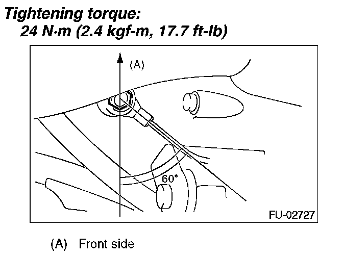 NOTE: Extraction area of knock sensor cord must be positioned at a 60° angle relative to the engine rear.