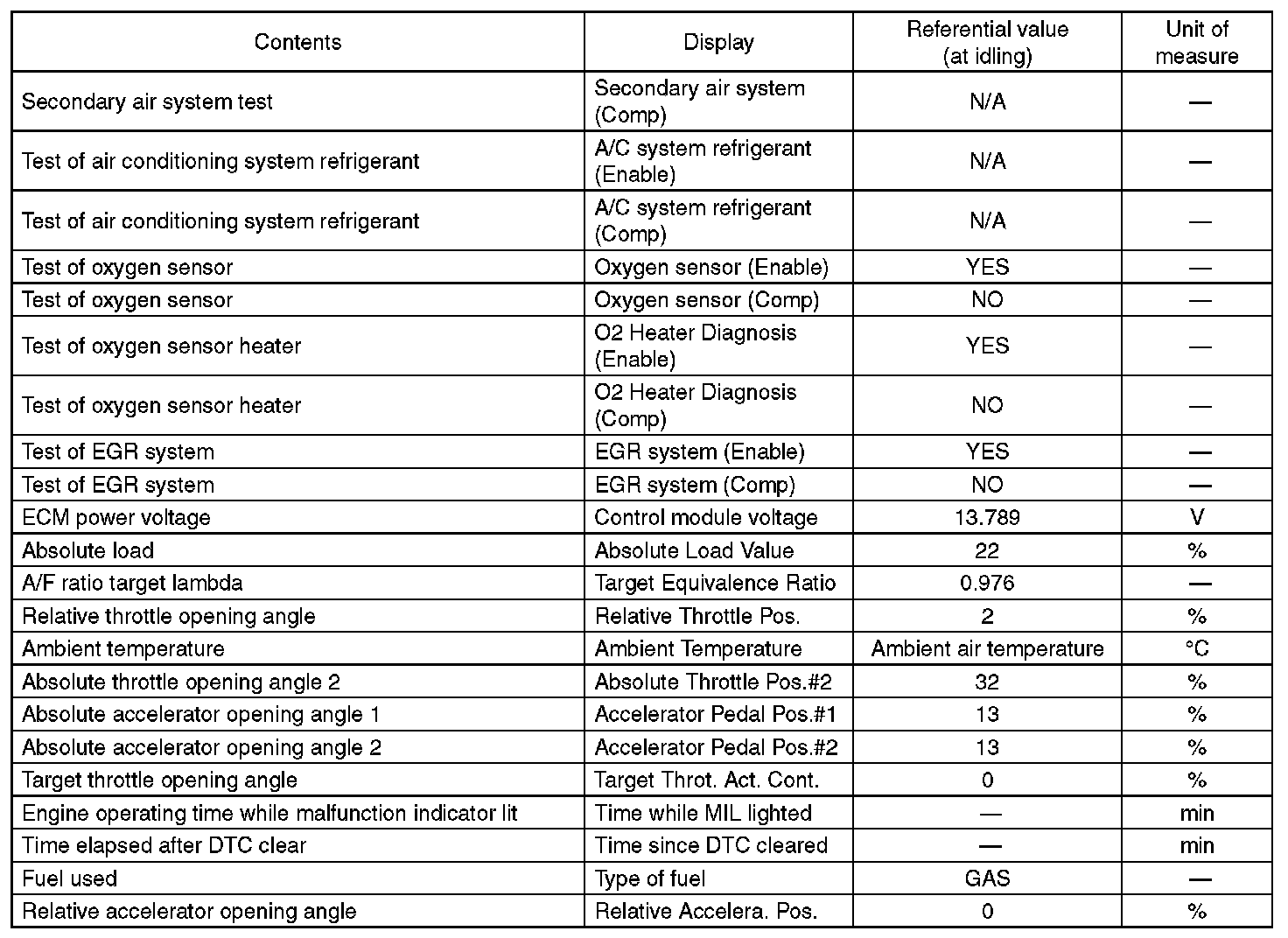 5. READ CURRENT DATA FOR ENGINE (OBD MODE)