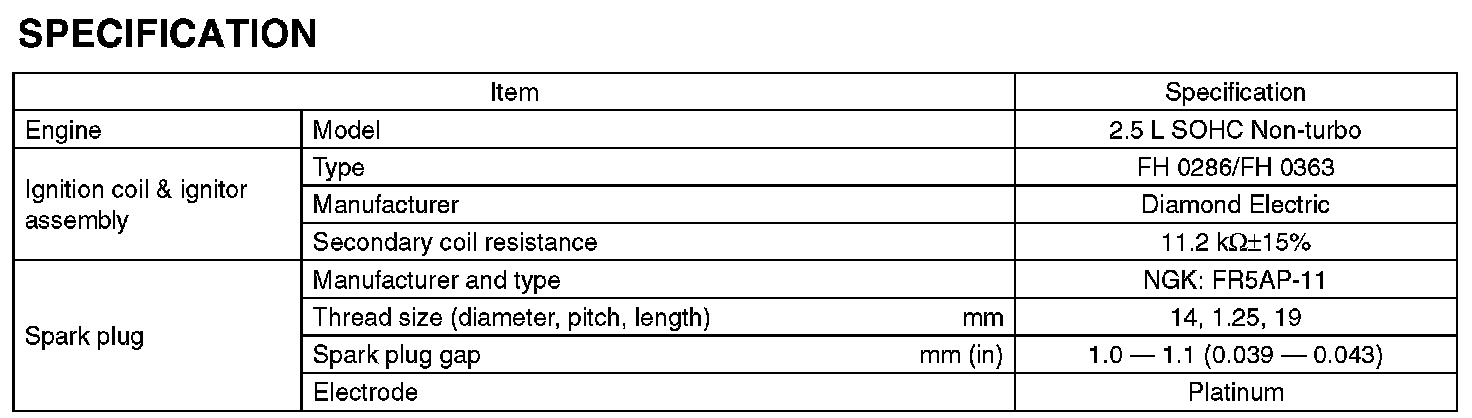 Ignition System: Specifications