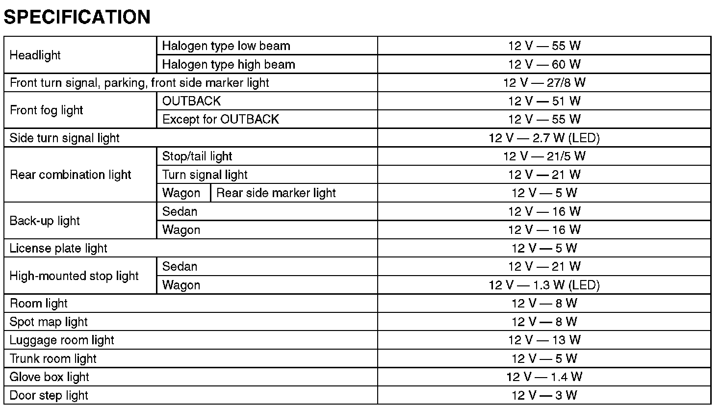Outback F4-2.5L SOHC