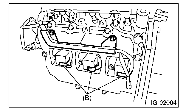 4. Disconnect the connector (B) from ignition coil.