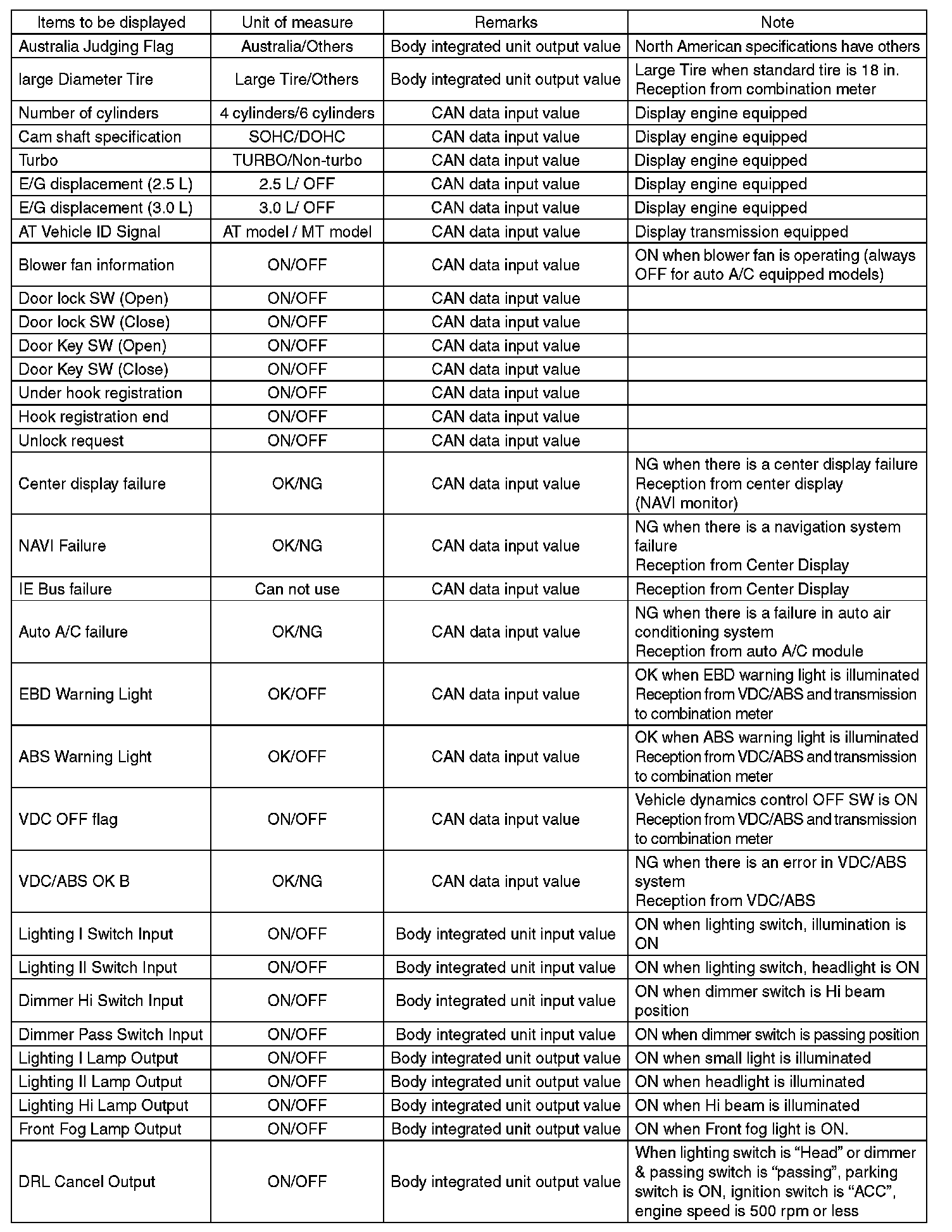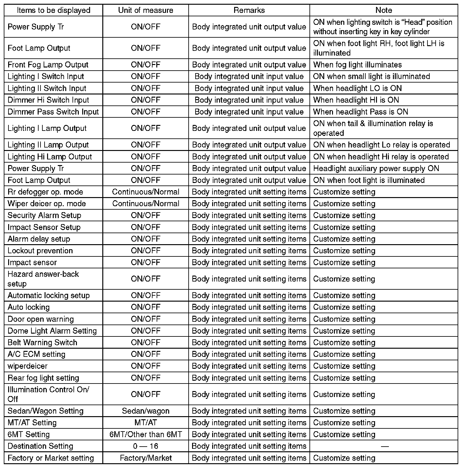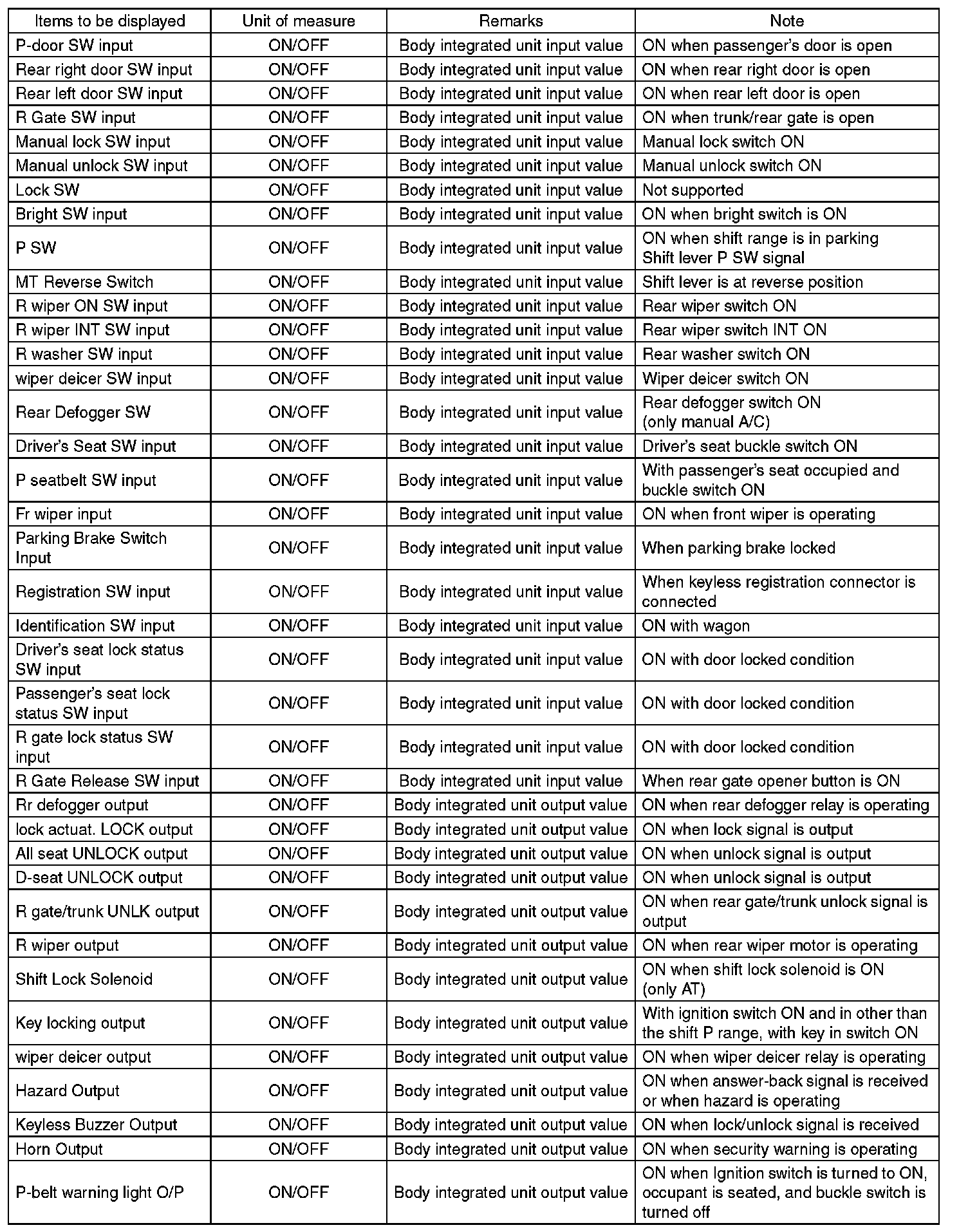 Home >> Subaru >> 2009 >> Forester F4-2.5L SOHC >> Repair and Diagnosis >> Body and Frame >> Body Control Systems >> Testing and Inspection >> Scan Tool Testing and Procedures >> Read Current Data