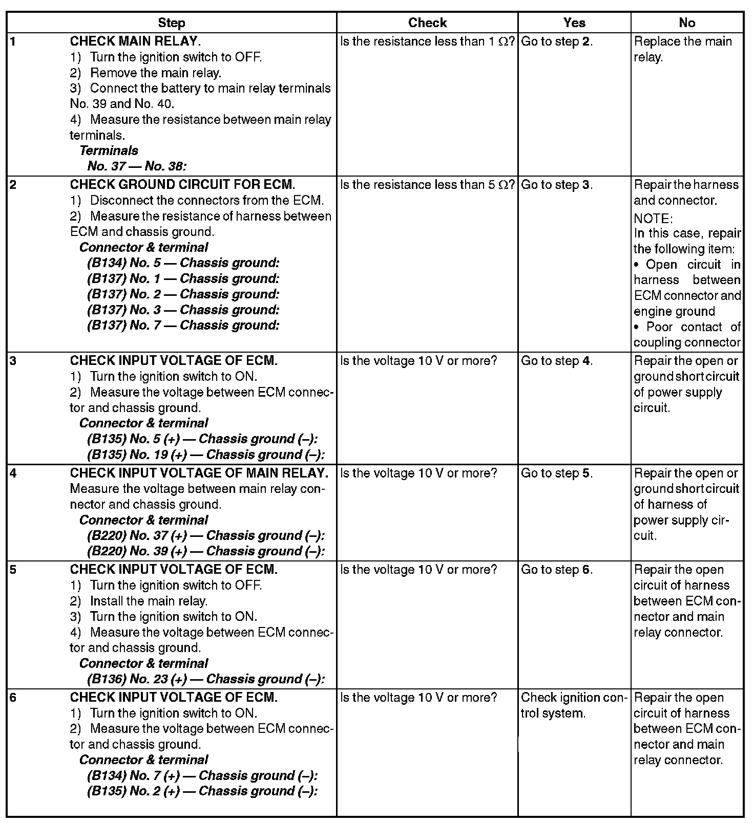 CHECK POWER SUPPLY AND GROUND LINE OF ENGINE CONTROL MODULE (ECM)CAUTION: After repair or replacement of faulty parts, perform Clear Memory Mode. Clear Memory Mode and Inspection Mode. Preparation For the Inspection Mode