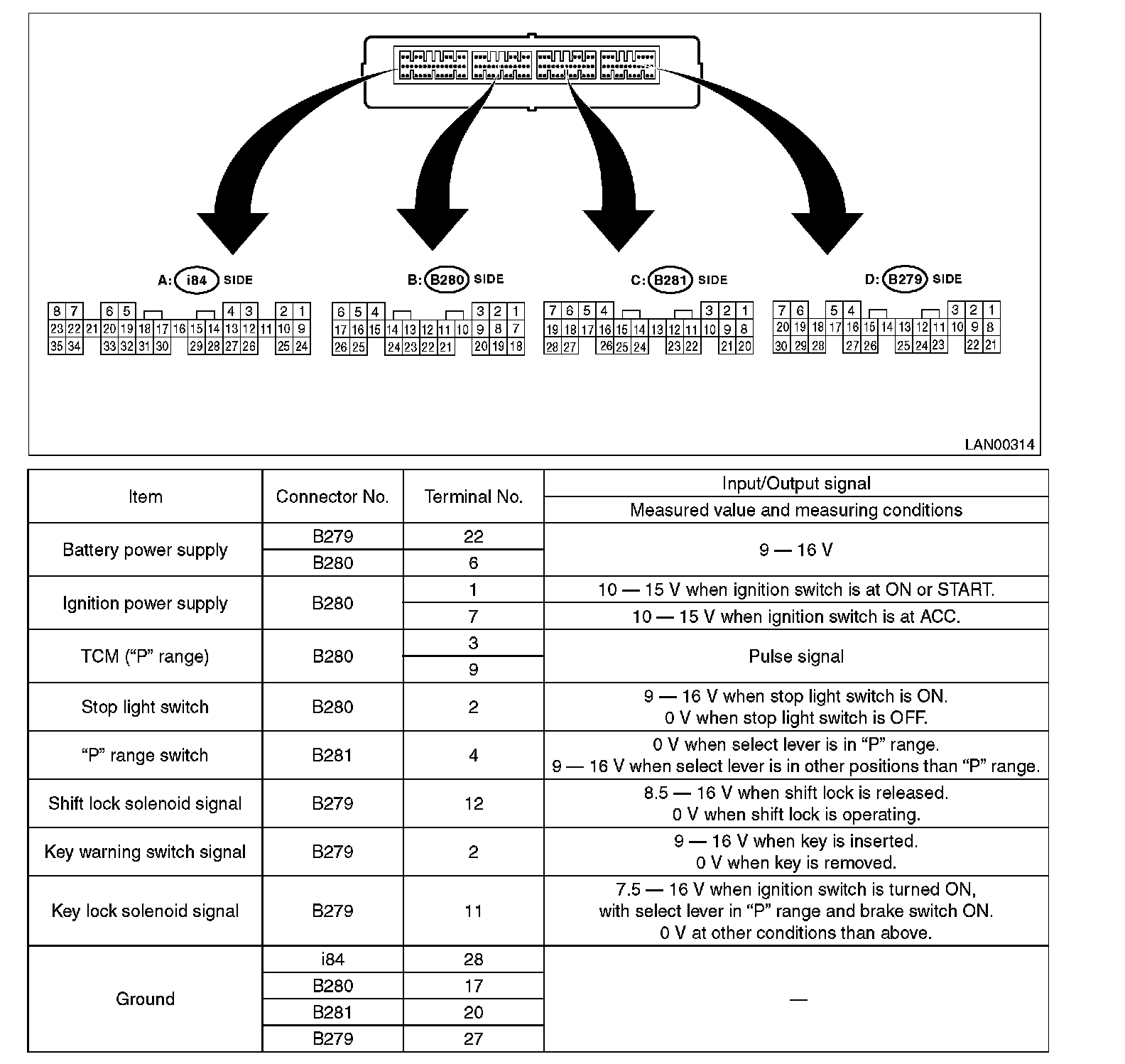 Pinout Values and Diagnostic Parameters