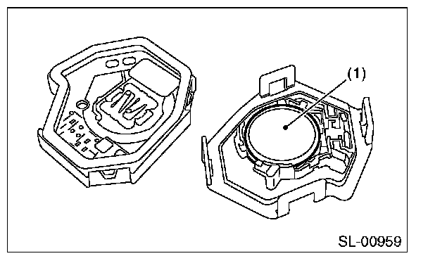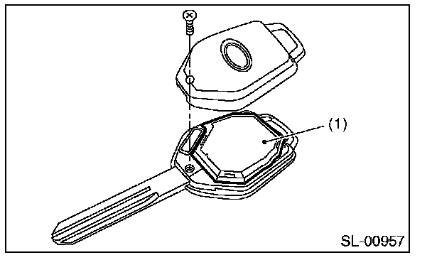 1. Disassemble the keyless transmitter, and take out the transmitter case (1).