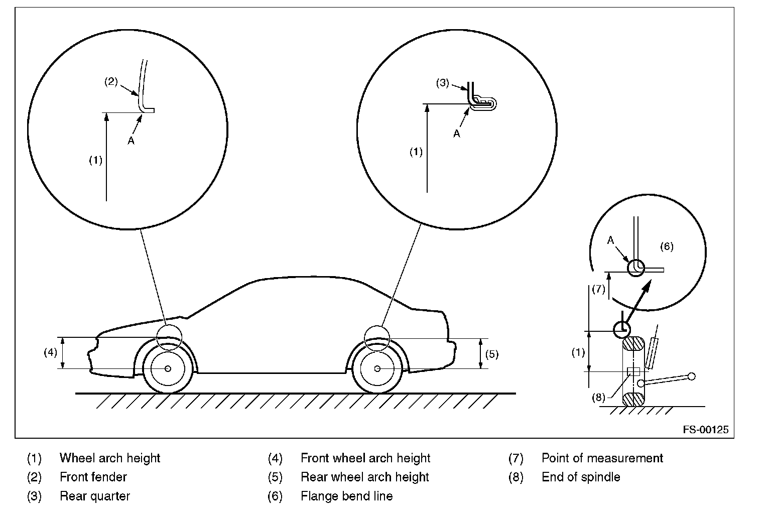 2. Place a mark at the center of both left and right tires, and measure distance "A" between the marks.