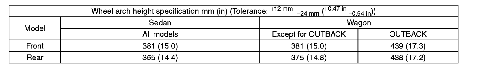 Except for OUTBACK model 0±2 mm (0±0.08 in)