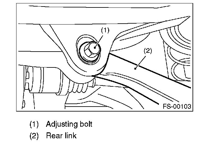 1. Make thrust angle adjustments by turning the toe-in adjusting bolts of the rear suspension equally in the same direction.