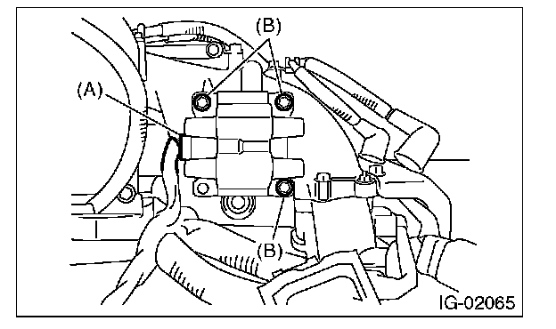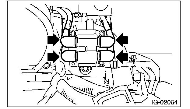 4. Remove the bolt (B) which secures the ignition coil and ignitor assembly to the intake manifold.